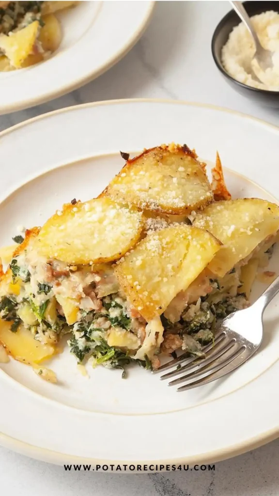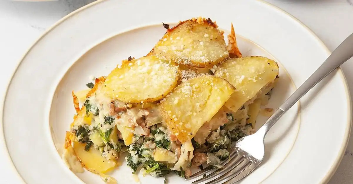 This dish takes all the flavors of classic lasagna and swaps the noodles for tender potato slices. Here’s how it all comes together: